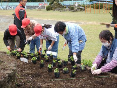 地域ボランティアのみなさまに来ていただき、花いっぱい活動を行いました。