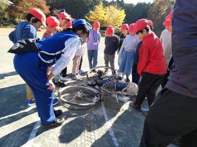 トラックに轢かれてしまった自転車を実際に見て、事故の怖さを感じつつ、交通安全の大切さを考えることができました。